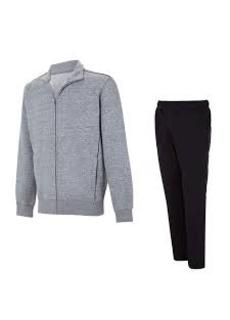 BUZO DEPORTIVO UNISEX COLOR GRIS Y NEGRO TALLA M, PANTALÓN Y CHAQUETA CORTE RECTO, CON CUELLO, PUÑOS ELASTICADOS. PRENDA IDEAL PARA ACTIVIDADES DEPORTIVAS, EDUCACIÓN FÍSICA, ETC.