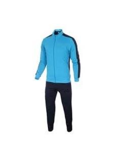BUZO DEPORTIVO UNISEX COLOR CELESTE CON NEGRO TALLA M, PANTALÓN Y CHAQUETA CORTE RECTO, CON CUELLO, PUÑOS ELASTICADOS. PRENDA IDEAL PARA ACTIVIDADES DEPORTIVAS, EDUCACIÓN FÍSICA, ETC.