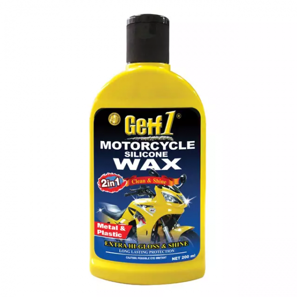 formula 2 en 1 que lustra el metal y el plastico de la moto con una fuerte capa de silicona.