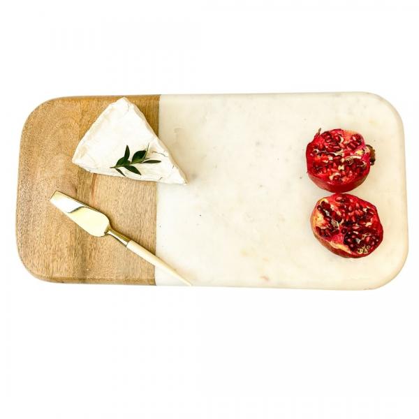 Tabla de Mármol y madera de Mango Magnolia para los más ricos aperitivos. De materiales nobles y diseño elegante.