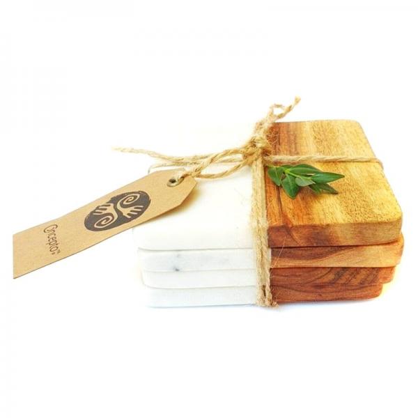 Juego 4 Posa vasos Mármol Madera Acacia