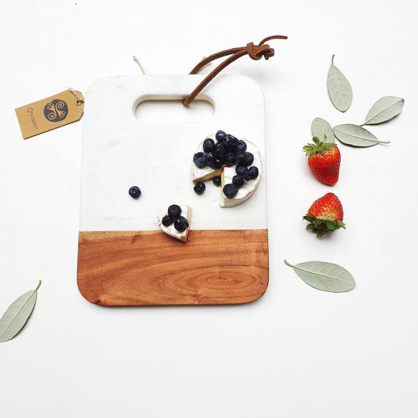 Tabla de Mármol con madera Acacia para aperitivos y quesos.
