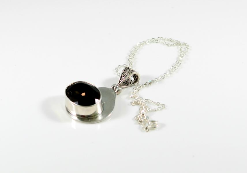 Colgante Plata 925 con piedra Cuarzo Fumé. Hecho a mano.