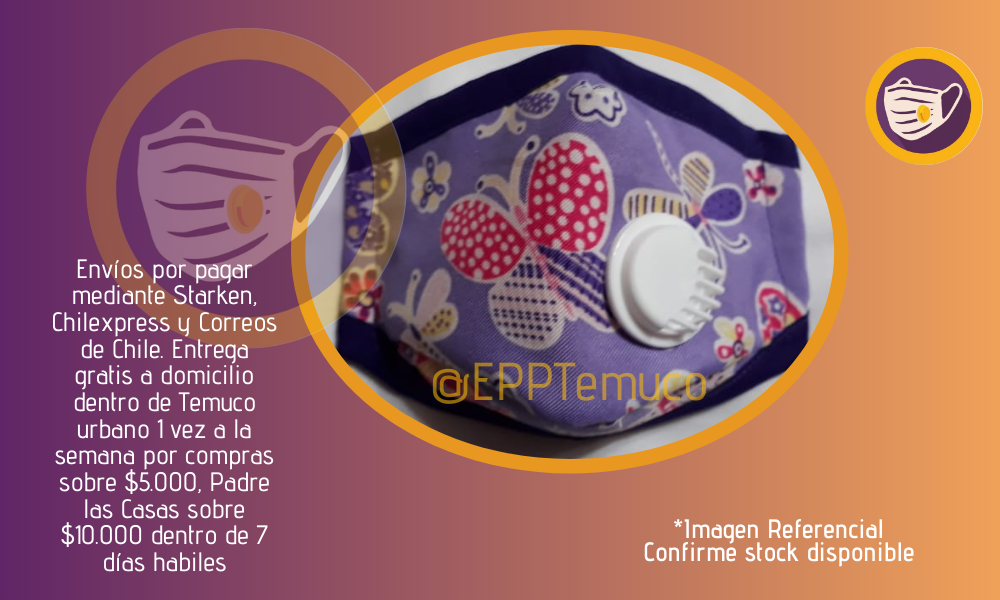 Lavable y reutilizable, 3 capas de poliéster-algodón, ajuste nasal, válvula de exhalación facilita respirar y ayuda a no empañar los lentes, elástico ajustable y mentonera para mayor acoplamiento