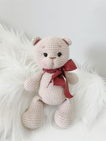 Osito amigurumi hecho a mano con la tecnica de crochet.