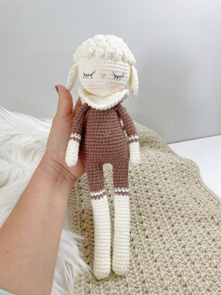 Ovejita amigurumi hecha a mano con la tecnica de crochet.
