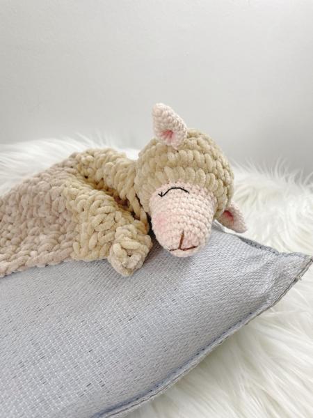 Ovejita tuto de apego hecha a mano con la técnica de crochet.