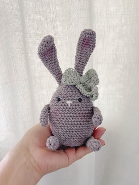 Conejito amigurumi hecho a mano con la tecnica de crochet.