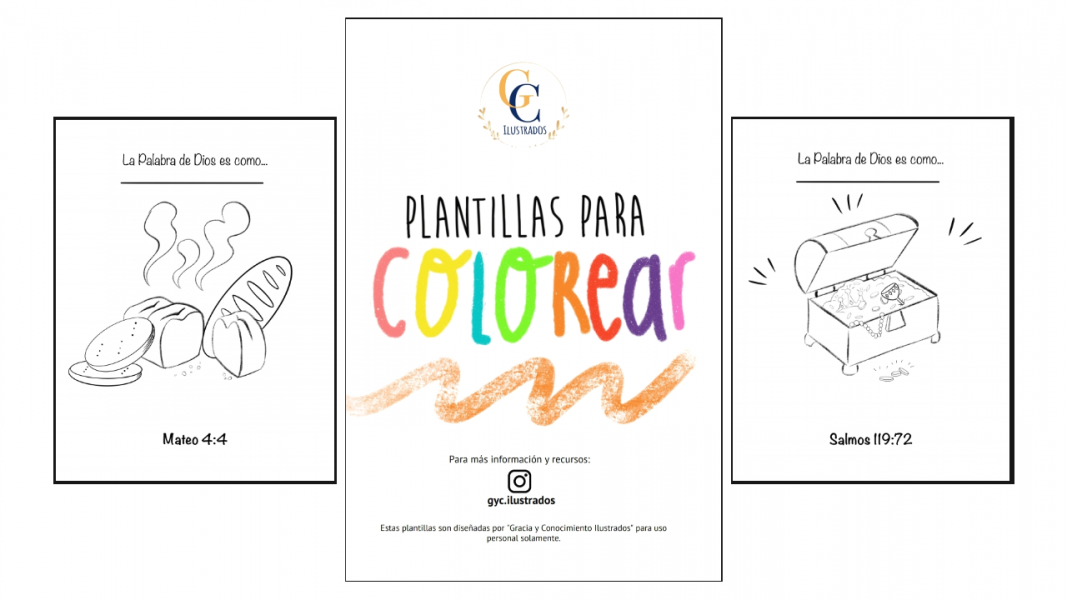 Pack de 10 plantillas para colorear con el tema "La palabra de Dios es como...", cuyo propósito es incentivar el tiempo devocional junto a niños entre 3 y 10 años.