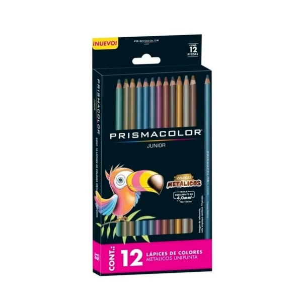 Los Lápices de Colores Metálicos Prismacolor Junior son la herramienta ideal para artistas jóvenes y entusiastas del color. Con un total de 12 unidades, cada lápiz cuenta con una rica pigmentación que