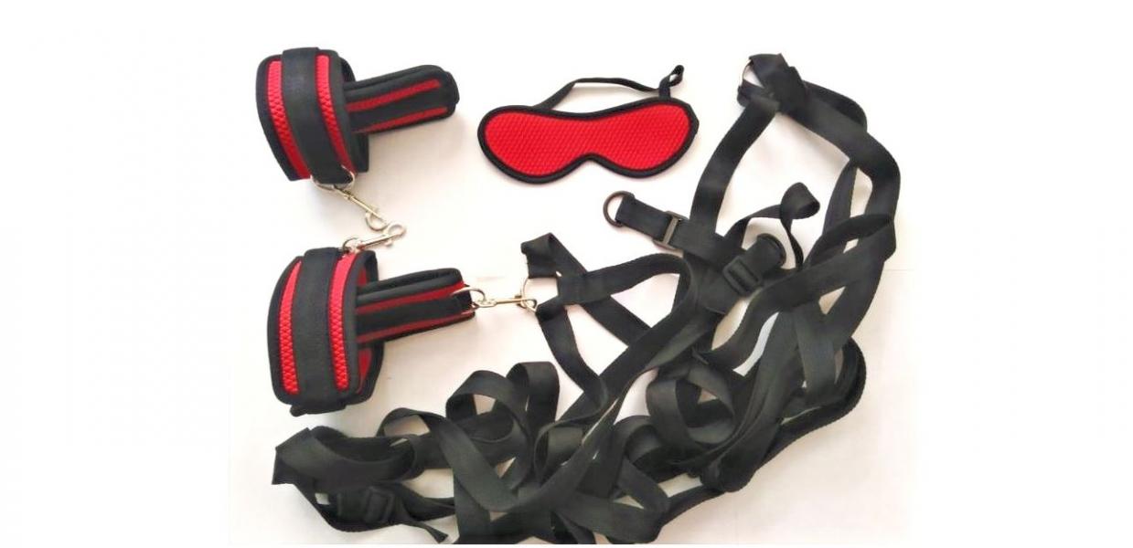 Contiene amarras para la cama y antifaz.